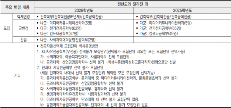 (2026학년도 정시) 건국대 변경사항