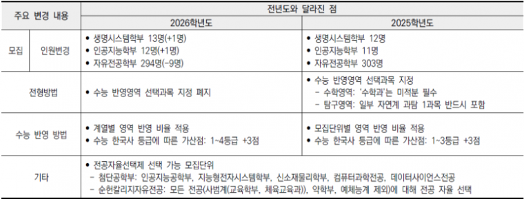 2026학년도에는 수능 반영 영역의 선택과목 지정이 폐지되어 수험생의 선택 자유도가 높아졌다.